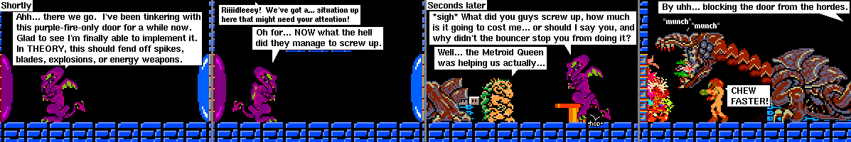 Aaaaand yeah... the Metroid Queen comes in handy. Well... Kraid might have been able to accomplish somewhat the same, but it'd take him forever and a day. Also, it's debatable if his mouth opens big enough :P