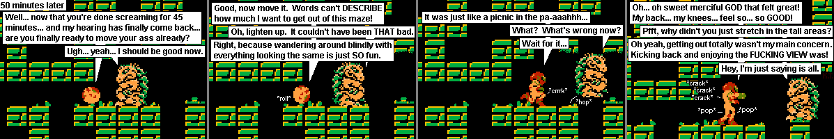 Metroid, Samus, Kraid, and the rest of 'em are all property of Nintendo, who to my knowledge wouldn't do anything such as sue me or shut poor Planet Zebeth down, because they're so damn nice, and Metroid kicks ass : }