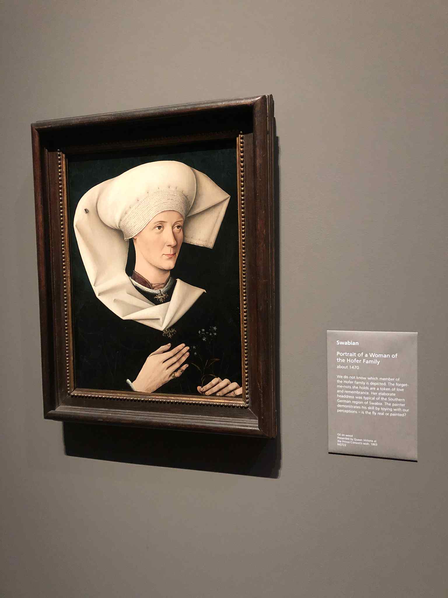I have seen it! Portrait of a Woman of the Hofer Family, also casually known as the woman with a fly painting, also the painting that I saw myself akin to on page 1 of the fly chronicles! I have seen it in the person, absolutely by unexpected chance!!! Now, online it shows as in the collection ofthe National Gallery in London (!!!), but I hadn't researched that or anything. It was just a weekend day out with friends, we ended up wandering over towards Trafalger Square, and on a whim, ayy, let's check out the National Gallery that's right there! Wandering through, and what do I come across, staring at me from just a few feet away, completely out of the blue. The painting. Portrait of a Woman of the Hofer Family. Right there, in front of me. I was amazed, and HAD to take a photo of it. I should have taken a selfie with it, but... it's in this city, you may see another post about this yet! Next time I'm near Trafalger Square, most likely.