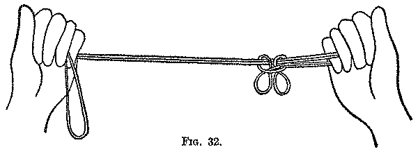 This figure was taught to me by Dr. Haddon in August, 1904. He obtained it when on the Cambridge Anthropological Expedition to Torres Straits; it is described by Rivers and Haddon (p. 150). In Mer (Murray Island), Torres Straits, it is called Ares = Murray and Dauar men fighting. One twisted loop of the finished figure represents the Murray man, who always carries off the Dauar man’s head.