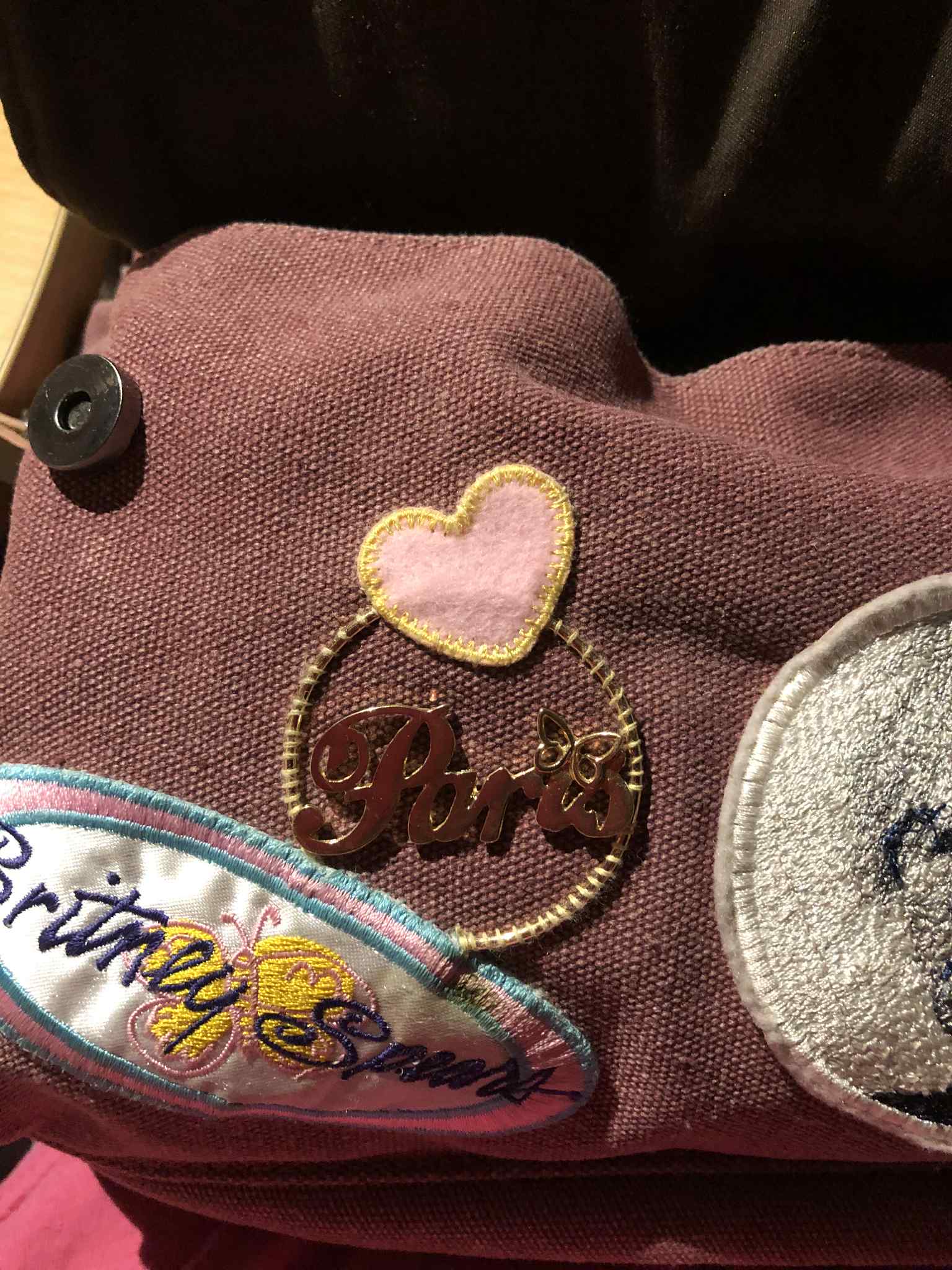 Several more additions to the bag! I've been wanting for a while to find a Costa Coffee keychain, and then just this last Christmas (2024), Costa Coffee had available for a limited time Christmas-themed keychains and ornaments (I love their selection of vegan milk alternatives, oat milk is just 100% superior to cow in every way, and I've been collecting the milk-alternative cup stickers), and immediately grabbed up one of each. The keychain had a gingerbread man floating in the coffee, but to make it just coffee, I popped that off, drilled a hole clean through the cup for the security of 18-gauge stainless steel wire, painted the coffee a lighter brown to account for the creamer, then attached that to the bag. Awesome :D Secondly, I've also been hunting for a Paris Hilton patch to add next to Britney Spears (I have Paris's memoir as well, a signed copy from Waterstones!), but have been unable to find anything. And then, in late 2024, she announced a jewellery line released at Claire's, and I found a set of earrings with Paris in the center of the hoop, in her font (and with a butterfly as well to match with Britney!), so I bought a pair specifically to sew one onto the bag. Once I find a suitable patch, it will be sewn overtop of the clasp portion at the top of the hoop. I'm so happy that I finally found something Paris-related to add to the bag. Also to mention, I reinforced several of the pins, namely the Trappers' Festival and We are the city ones, with 12 pound Spider Wire fishing line to avoid them accidentally coming loose. Those ones are the most important to me so they get special treatment, and the others, well, if they slip off, those will become a gift for the next person that comes across them ^_^ |