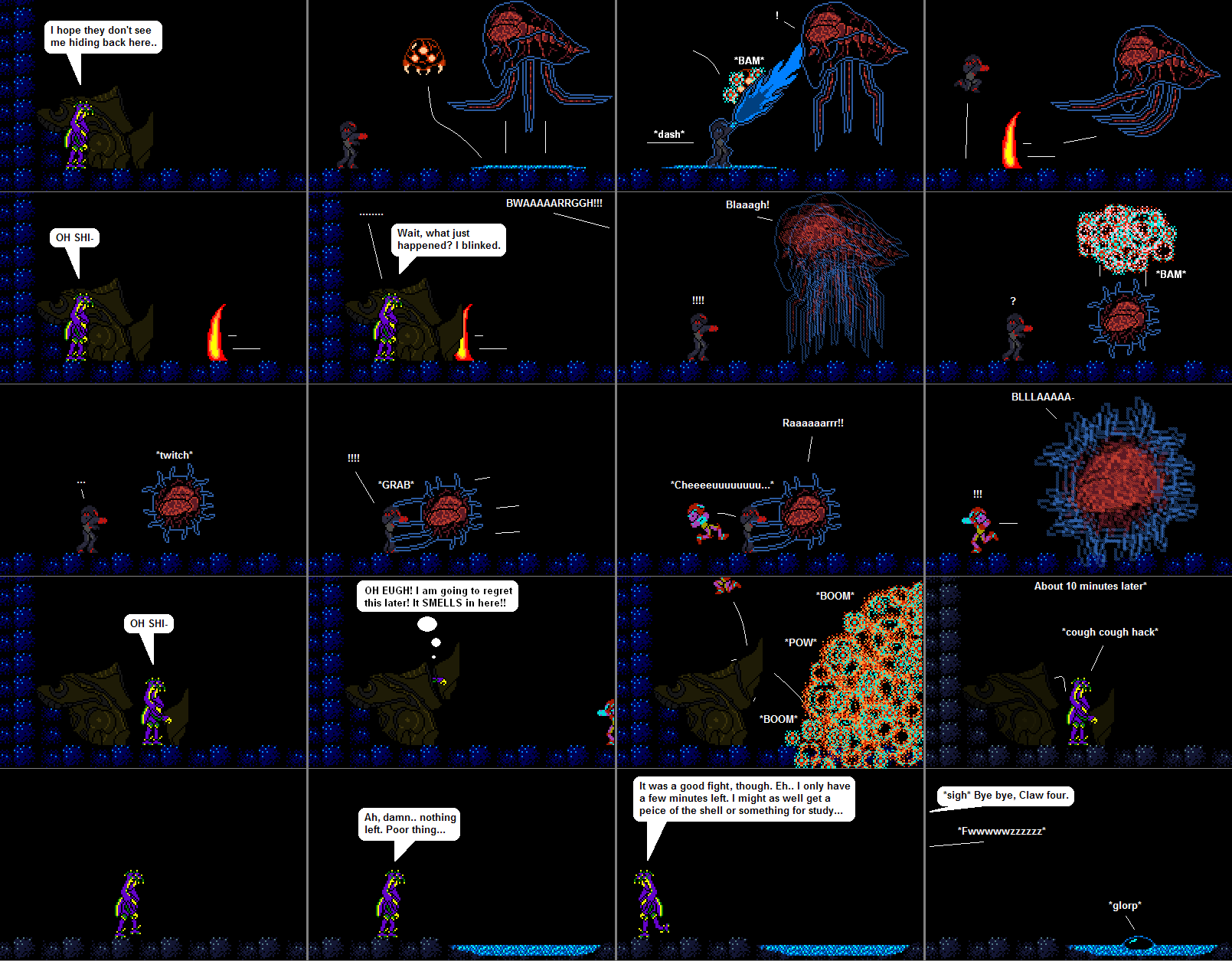 It was a good fight, though. Eh.. I only have a few minutes left. I might as well get a piece of the shell or something for study...