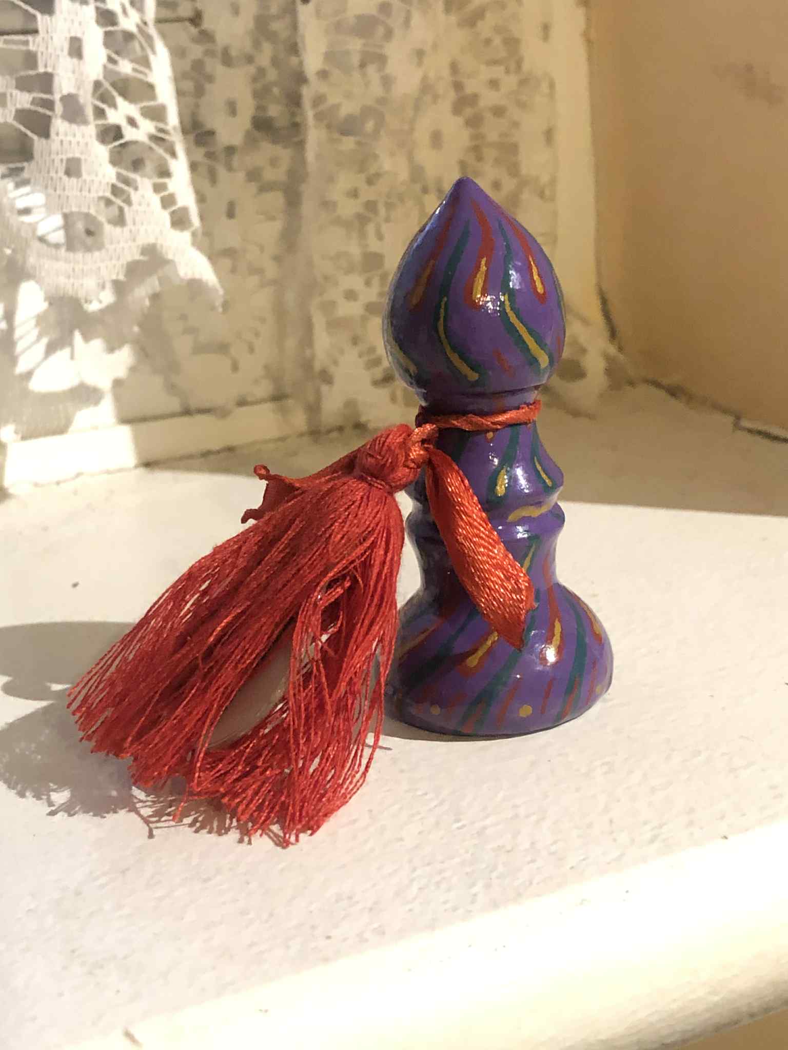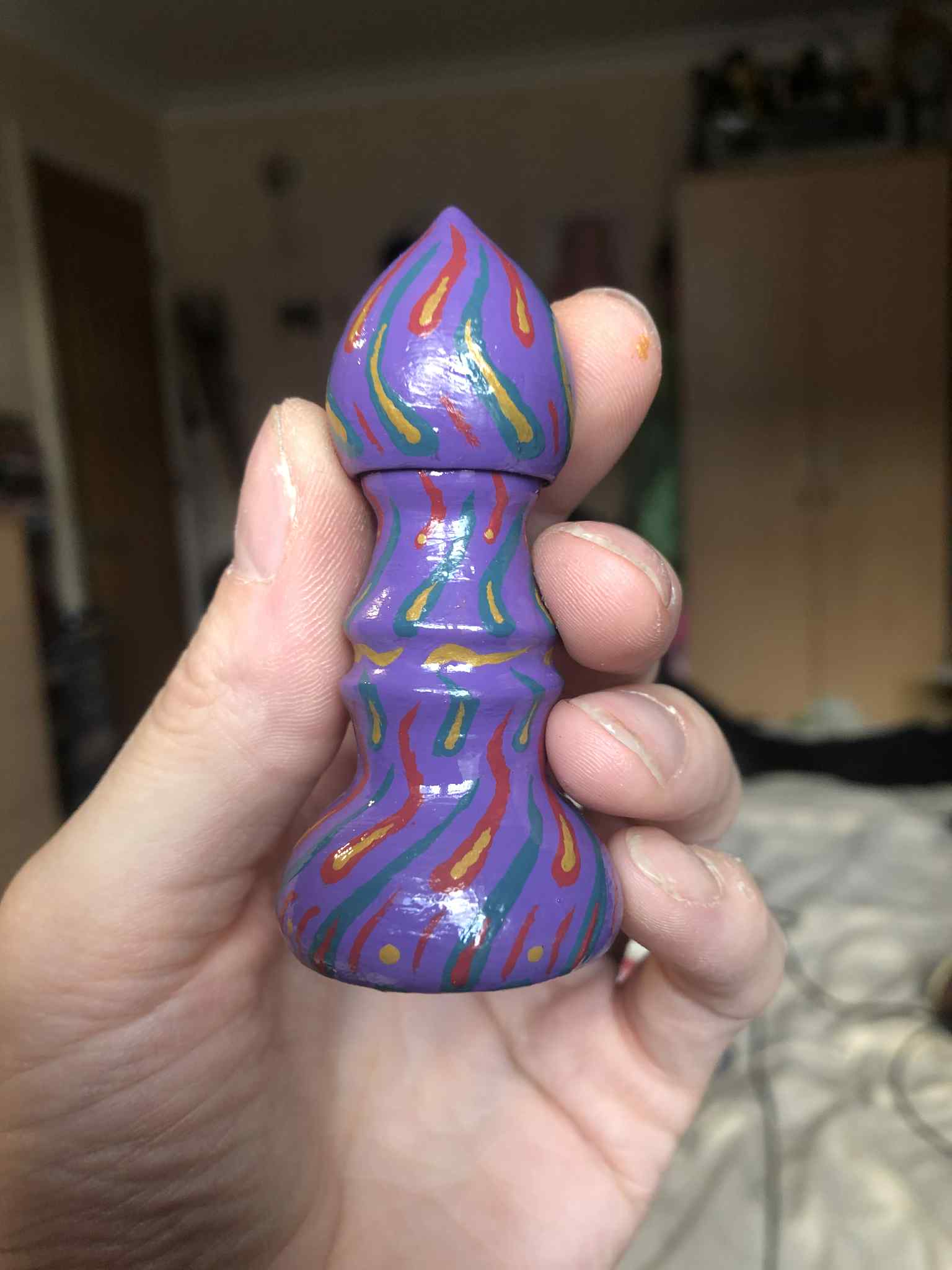 So, originally this item wasn't going to be built. It was listed in the All the Many Things page, with just purely digital images (and still is, it just looks better), but the thing is... when I was making the Menu of Many Things book, on the back inside cover where I listed additional magic items that you can draw from, I... accidentally added the Efreeti Bottle and Cube of Summoning. So now, while I could just reprint the page, I mean... I could also just build the items! I mean... it seems almost sad to have like... *every other item* made, but then be missing these two, so like... it had to happen. It was printed, it was destined. And so, we pondered how to go about doing this. First, we needed a bottle, of course. I tried hunting around craft and hobby shops, even candy containers that might look suitable, but nothing fit the bill. And then I found one of those little mini bottles of ye olde rotgut on the ground, and thought ayyyy, that looks like it'd work! So we scooped that up, and set about hacking it to pieces! And what to draw? Small little sticks, toothpicks! But not cheap wooden ones, those tend to split down the middle, as... countless annoyances while painting with them have told me. Bamboo tho... that grows very straight-grained, is very strong, you should do me well! So we ordered some bamboo toothpicks online (finding them in-store was proving difficult), and set about adjusting the rules to it. So... there's ten possible results, a 1 in 10 chance of three wishes, 1 in 10 chance of it attacking you, and 8 in 10 chance of it helping you for an hour, which you can call upon three times. Also why I didn't make it initially, it's a one-time use item (so to speak), once a stick is drawn, you get the result, and then it becomes a nonmagical bottle. But... the printer has spoken, it must be made! So, as the rules state that there's smoke, then a flash of fire, and then the genie appears, I decided to paint the tops of the toothpicks to look like flame, as much as I could. I didn't make them pointy-topped, I figured that was just asking to get chipped off, but... fire-looking paint. On the bottom, we painted one gold, one red, and the rest blue, so that the instruction sheet that comes attached to the bottle can list the rules as red, blue, and gold. Also, when topcoating these, I used sparkly topcoat for the bottoms of the sticks to give it some magical sparkle ^_^ The bottle! I started by adding JB Weld to the inside of the bottom, to make it smoothly round and not have the plastic injection point dimple in the middle. The width at the very base was also made smaller with JB Weld on the inside, so that the sticks wouldn't be tempted to bend and curve underneath. So on the inside, it's more or less a straight shot down from the opening to the base. It also made the base heavier which is kinda nice, counterweights the lid. So we JB Welded AND crazyglued the bottom to the top (basically whatever I could do to get it smooth), and then to add the two ridges at the center of the stem, I used string also glued into place. I used some painter's tape to mark parallel lines with a file, and glued along those. In the meantime, all of this was kinda happening at the same time, I made the instruction tag somewhat in the shape of a bottle, and then randomly stumbled across a burgundy red tassle laying on the ground at a train station! So hey, I thought that would be a cool addition, kinda hide the tag inside something interesting for having it dangle around the bottle. So we used some 11 pound Spider Wire fishing line to attach the tag inside of the tassle (which also went through the main tassle loop, and wrapped around at the pinch point for added strength and avoid the default wrap there from coming undone. And with the tag waiting, the bottle was fully covered in JB Weld and sanded smooth, looking incredible at this point. It was painted with a primer, and then... since the official art (google image results) has a very intricate, geometically repeating pattern, there was *no chance* I would be able to recreate that, so I took some creative liberties. I gave it a purple base, since that felt "magical", with streaks of teal and burgundy, and smaller streaks or dots of gold usually inside of the other colours. And it came out incredible! Yah it's a bit different from the default, but fully burgundy? Eh, fully teal? Eh, let's do purple with streaks of the other two, and some gold in there. It got a spray of clear gloss enamel to protect the paint from the topcoat (which tends to streak even dried acrylic paint), and once that dried, we gave it two coats of nailpolish topcoat for an extra glossy finish and strength, and then all that was needed for that to dry so we can attach the tag. And how do we attach the tag? I took some red ribbon, soaked it in instant coffee for a week to get it to the colour I wanted (after rinsing and drying), and then twisted it in the loop around the bottle to kinda narrow it down to a thinner strand and square-knotted it into there, and added a drop of crazy glue to the knot to keep it from coming undone (which wasn't even fully necessary because of a thread sewn through the knot shortly). After mucking around a little bit to find the neatest way to attach the tag, we knotted that on too, and then to keep it looking smooth and uniform, used a red thread to sew those two knots together in the middle loop between the tag and the bottle. And with that, our Efreeti Bottle is complete! A tag interestingly hidden inside a tassle,an intricately painted bottle, and a handful of sticks inside for you to draw to see what your result is. Epic :D Finished October 5, 2025 Of course you can open the bottle. (original pre-build draw page retained for style) |