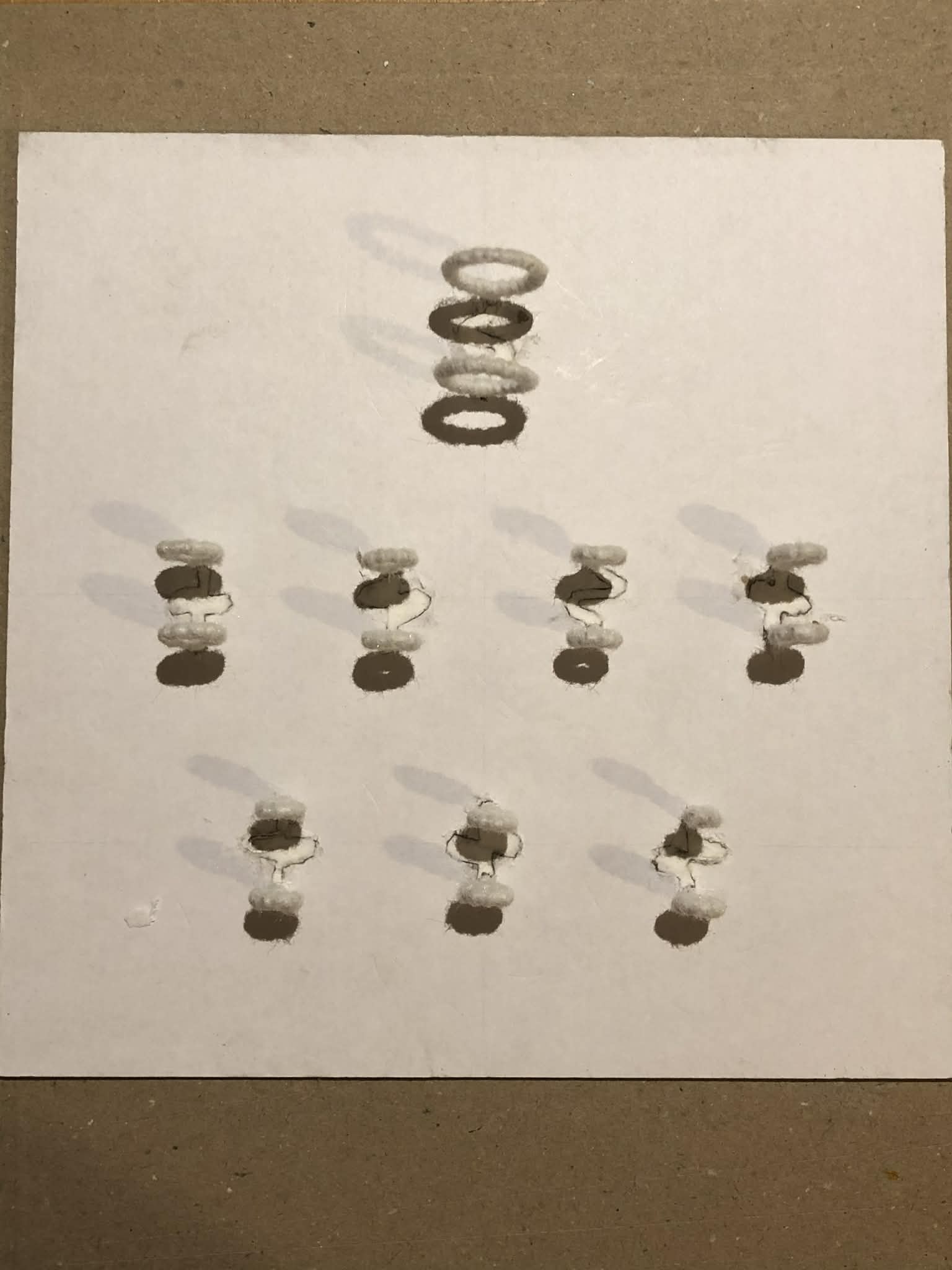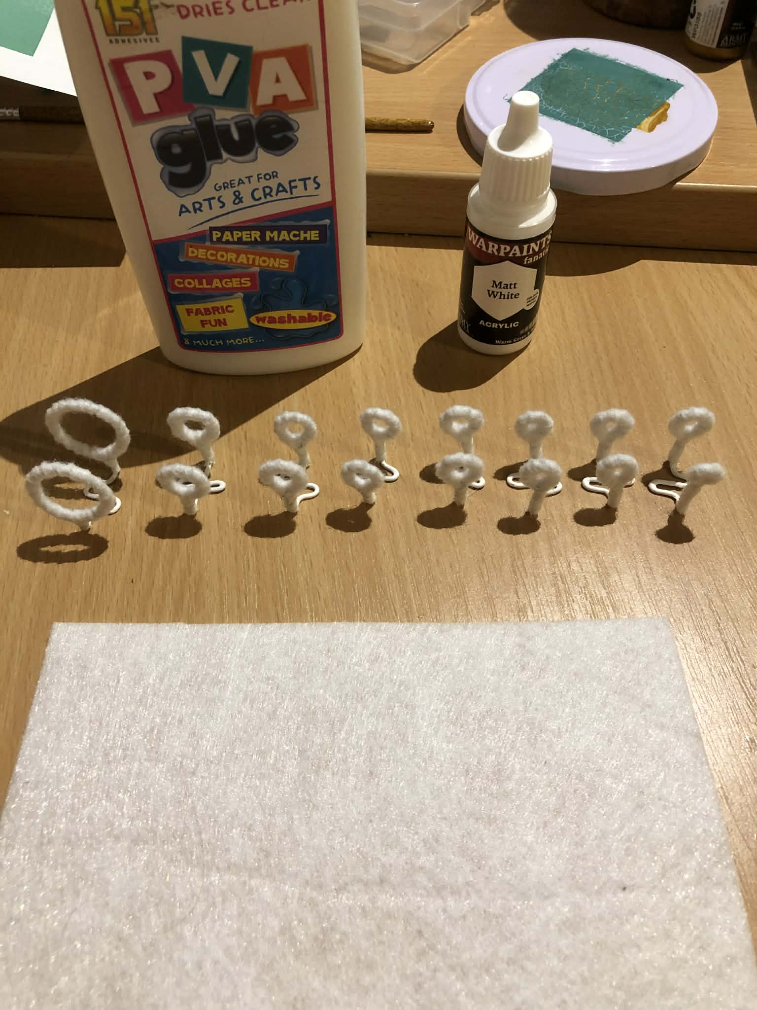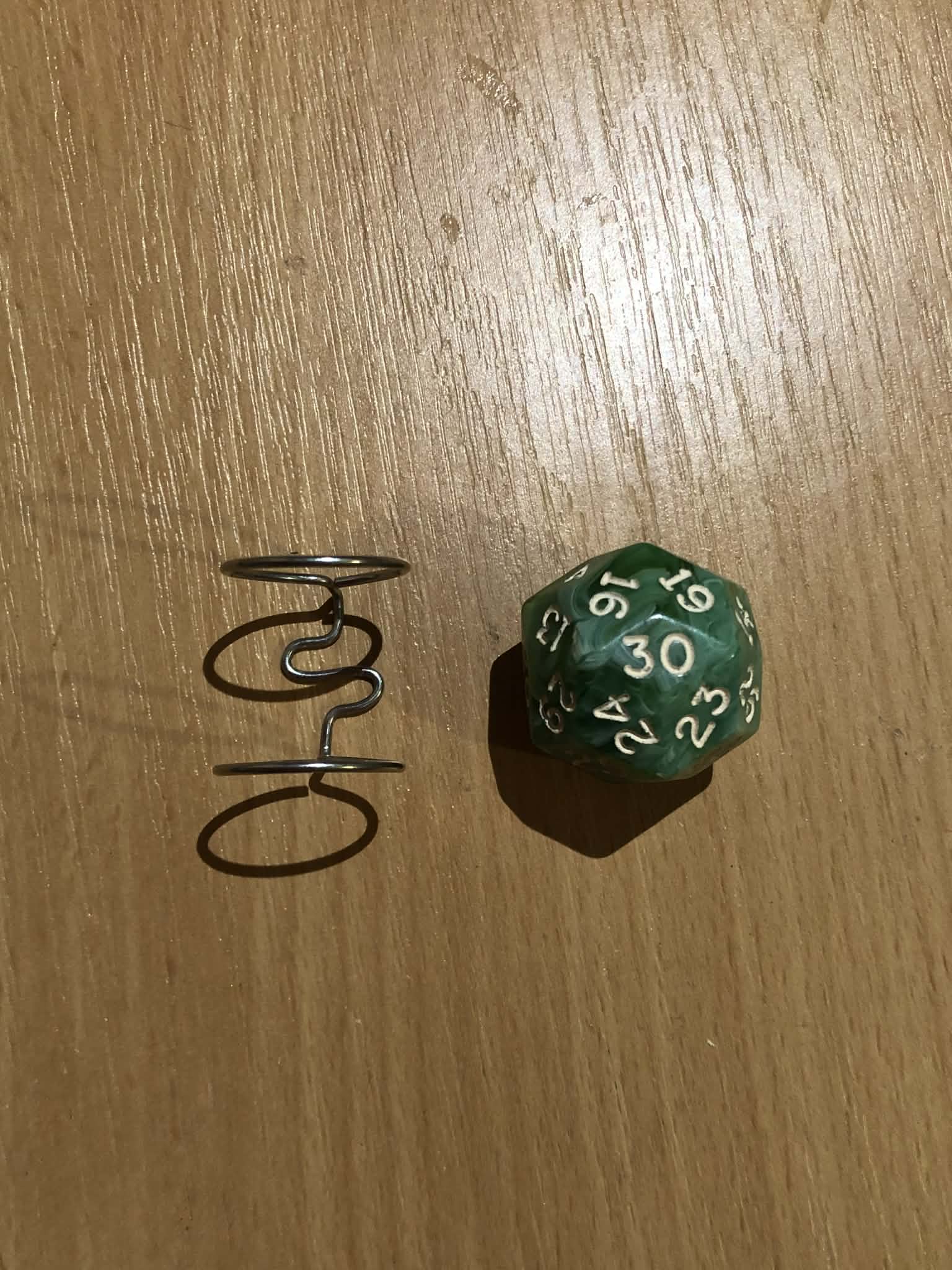Whew, ok, with all of that discovered... and with the added unexpected surprise bonus of finding the INFO SHEET!!!!, we can set about making a frame for these. Firstly, let's fold that placeholder info sheet in half to match the size of the original to plan the frame, and start on the wirework. At the same time, we can make the replacement inserts, thanks to the blank template on DiceCollector (DiceCollector.com). And with the templates and sproingy wires done, we covered the wire in felt to protect the dice. |